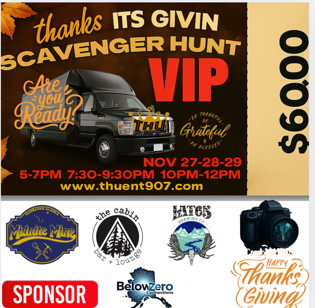 Includes the full Knight Ryder Thanks Its Givin Party Bus Scavenger Hunt plus exclusive entry to the private VIP After-Party and VIP treatment at participating bars. Each team includes up to 5 people.